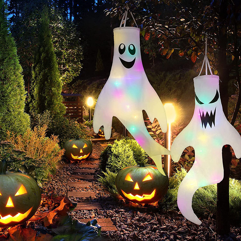 Home > Halloween Decorations Outdoor Decor Hanging Lighted Glowing Ghost Witch Hat Halloween Decorations Indoor Outside Ornaments Clearance Halloween Party L
