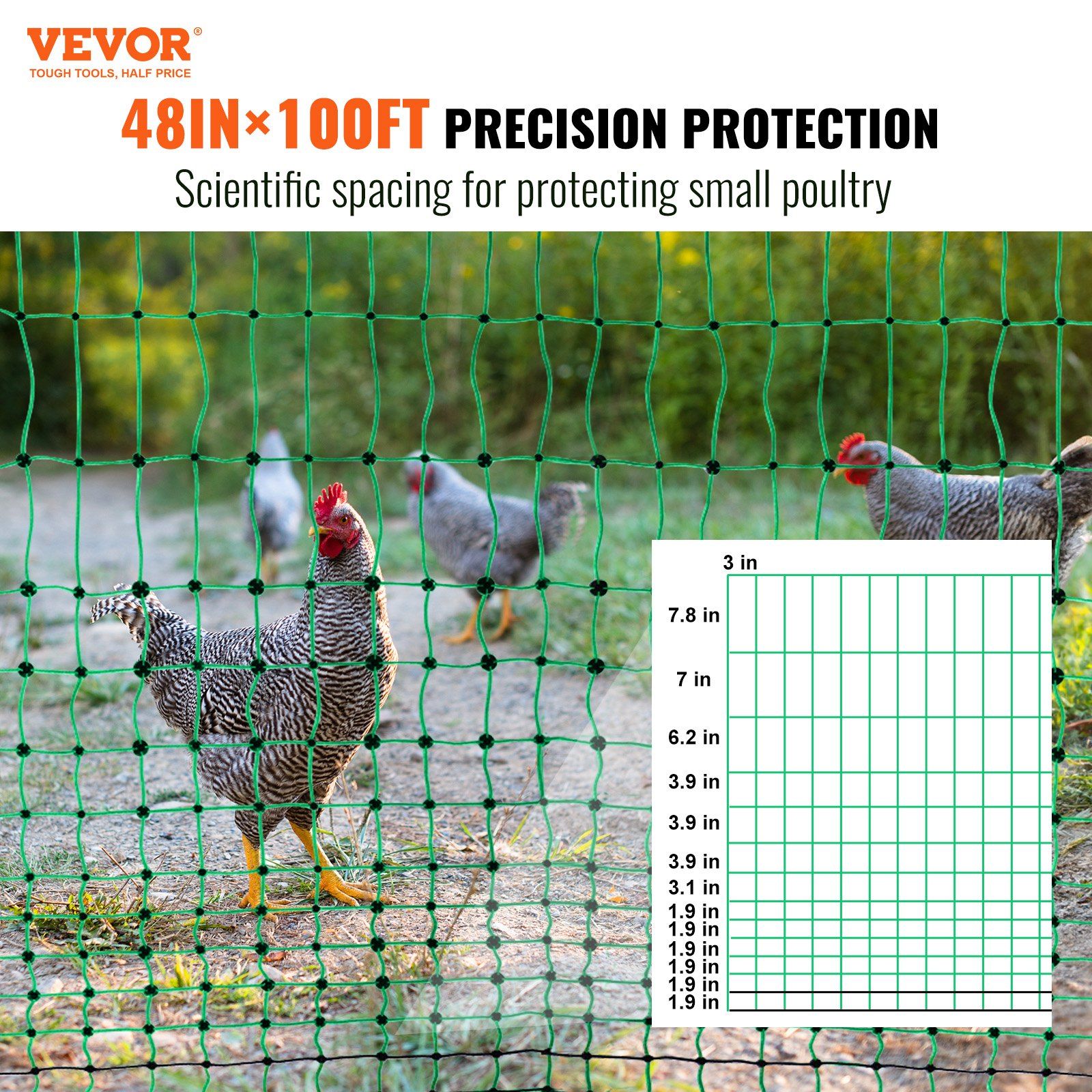 Home > VEVOR Electric Fence Netting, 48" H x 100' L, PE Net Fencing Kit with Posts & Double-Spiked Stakes, Utility Portable Mesh for Chickens, Ducks, Geese