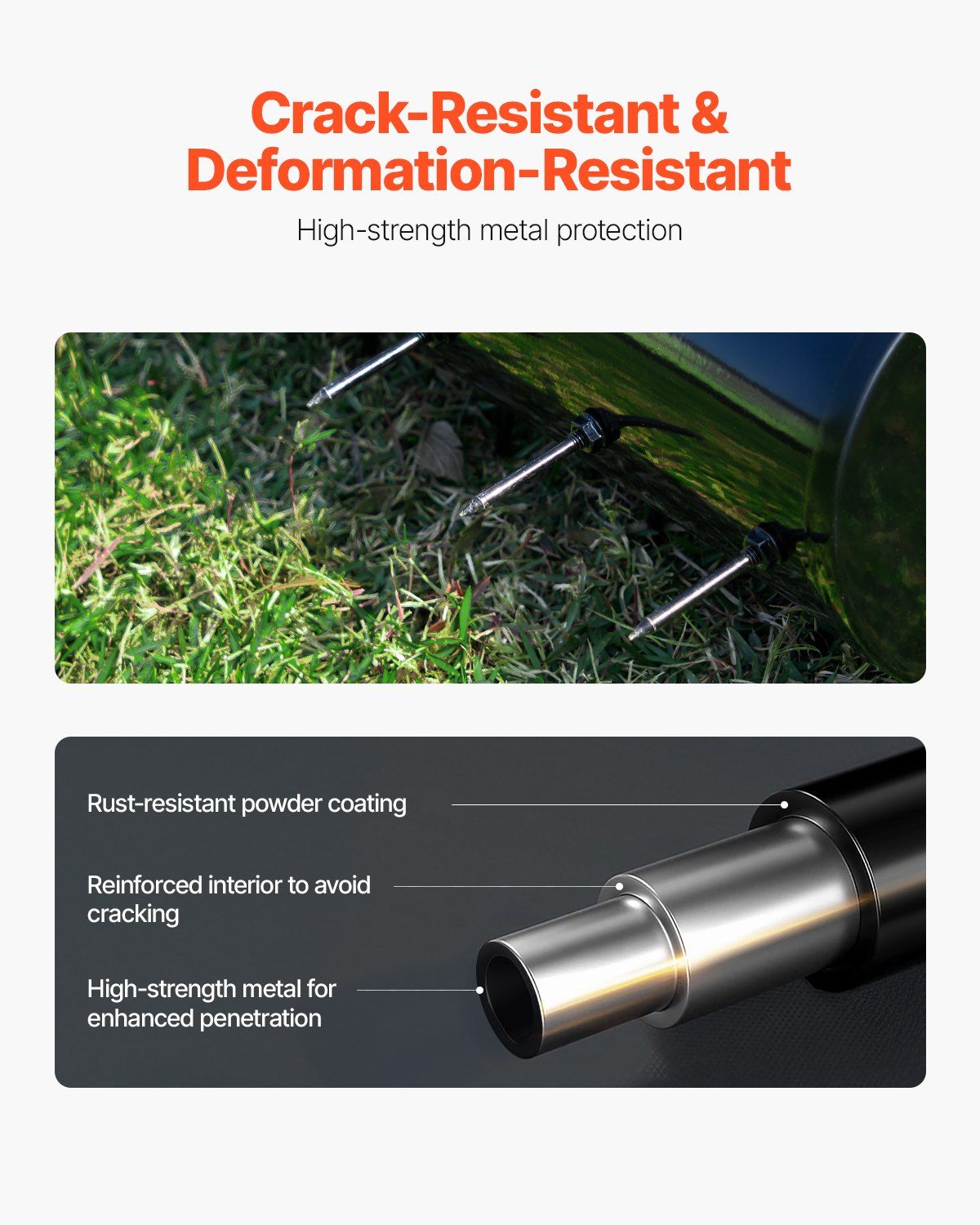 3.Rust-Resistant and Breakage-Proof: The high-strength metal spikes of this lawn aerator easily penetrate soil and are reinforced to avoid breakage. Coated with a rust-resistant powder, they're durable in both wet and dry conditions, providing long-lasting, reliable performance.