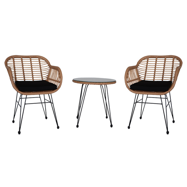 Do you need a Rattan Patio Conversation Set to fulfill all your daily needs? If so, you can have a try of our 3 pcs Wicker Rattan Patio Conversation Set with Tempered Glass Table. It is made of very durable and completely weatherproof rattan. Featuring sturdy construction and durable use, this patio outdoor wicker can well stand for both test of time and high temperature, which is perfect for any outdoor and indoor use and fulfills your purpose to decorate the place you desire. This outdoor set consists of 2 armchairs and a round table, which can be used for small decorations, snacks and drinks. Carefully hand-woven, all-weather wicker on the powder-coated steel frame to ensure long-term use. What do you hesitate for? Hurry and place an order!