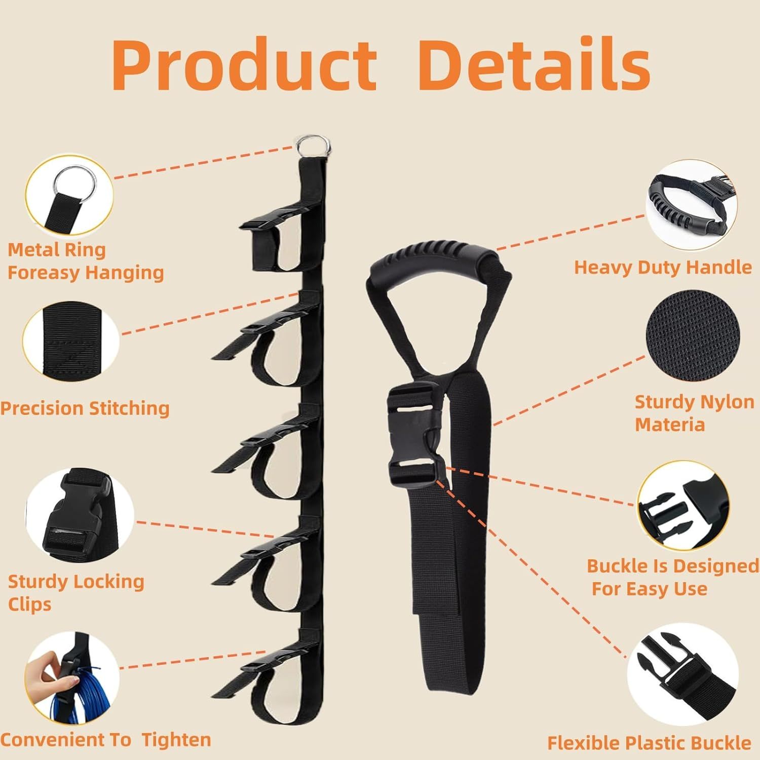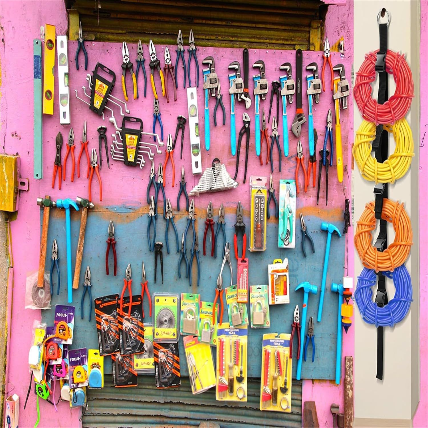 [Rugged material strength]: These two cord storage tools are designed with durable nylon material to ensure they meet your extension cord storage needs for the long haul. Each strap features a buckle that can be easily opened or closed and adjusted for tightness to further secure items. The storage straps are ideal for items that are difficult to move when coiled together, as they stay securely fastened. They are perfect for my extension cords and garden hoses.