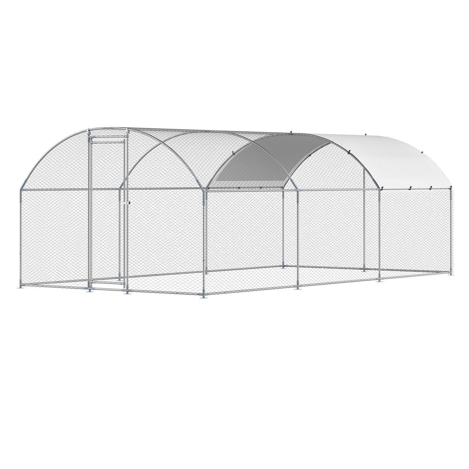 3.Spacious Living Area: This metal chicken run with a generous 9.8x19.3x6.5 ft of space, features four-sided ventilation, creating a healthy and comfortable environment. The PE-coated canopy provides sun protection, waterproofing, and tear resistance, shielding your poultry from external elements.