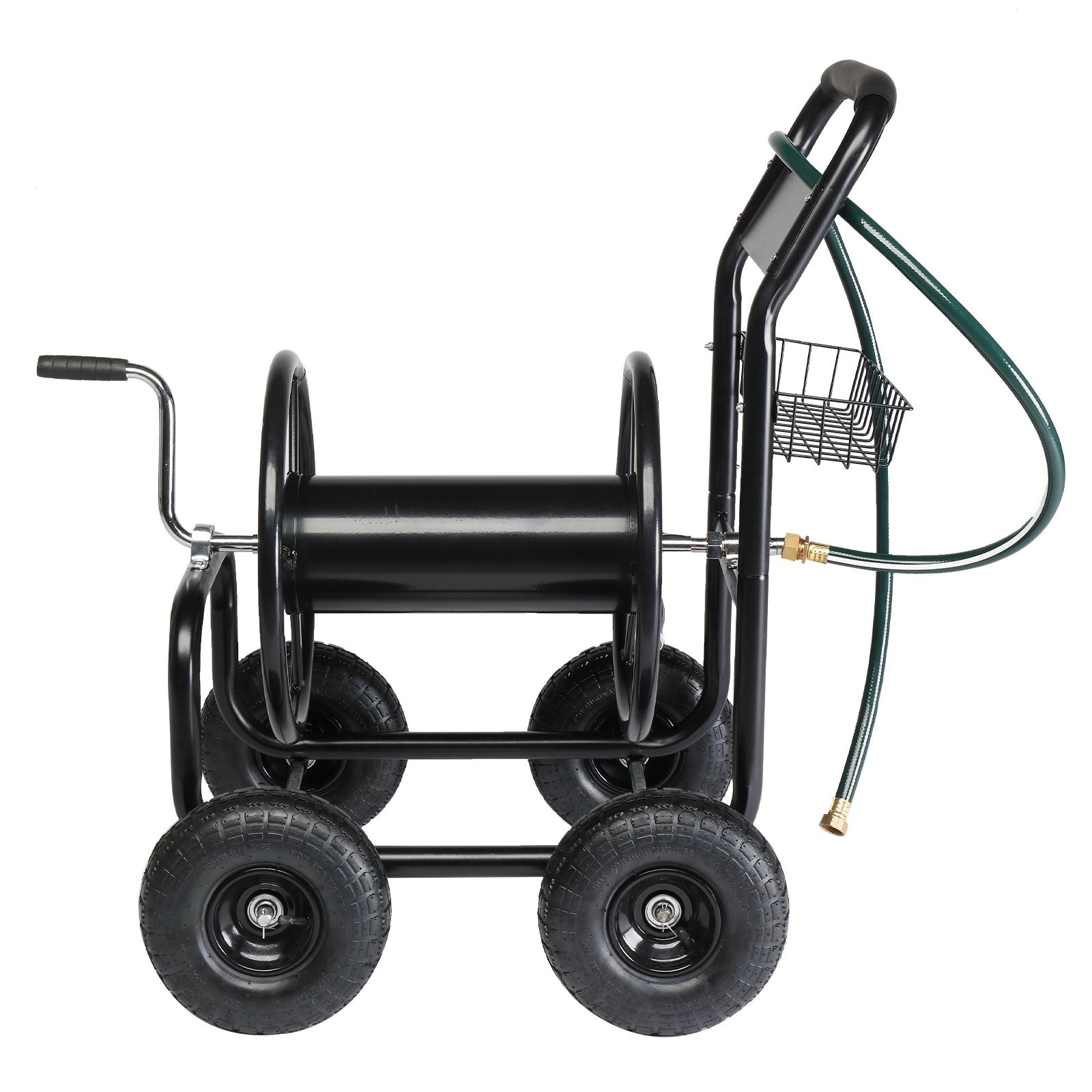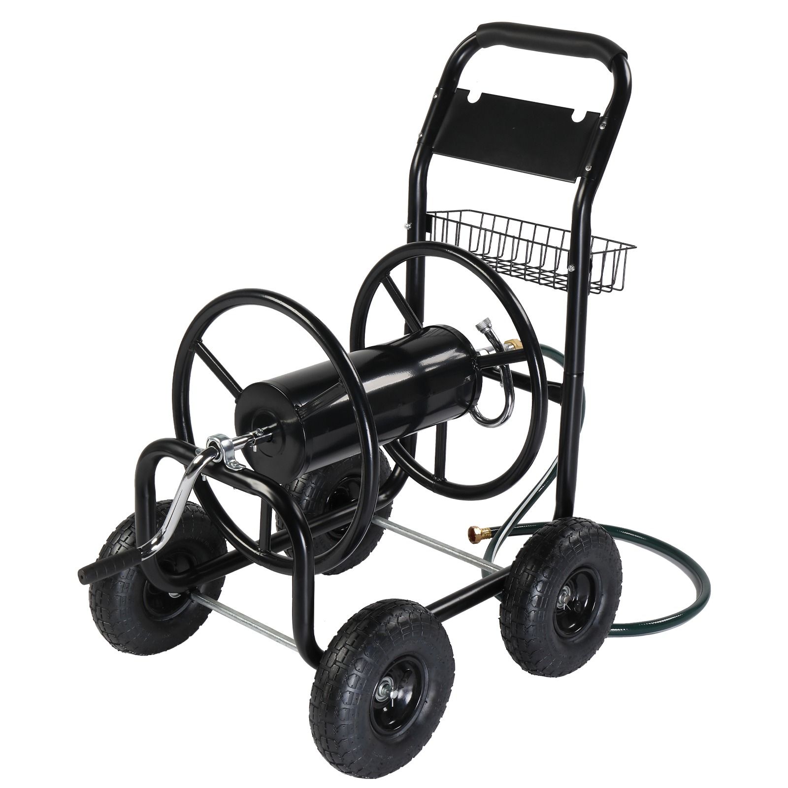 The classic black and green color combo adds a professional and tidy look to your yard equipment, while its rust-resistant finish ensures low maintenance. Whether you're a passionate gardener or just need a reliable outdoor hose storage solution, this water hose trolley is built to meet your needs with strength and style.