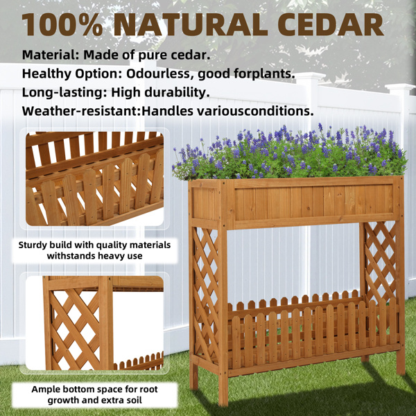 This Planting Box  is made of high quality wood, which operates perfectly in contact with soil and water and is not deteriorated by the weather, making it the best partner for your garden. With stylish look, the garden bed is also light-weight and handsome for gardens, patios, balconies, restaurants, cafes and anywhere that could use plant life. So don't hesitate, it's a good choice for you!