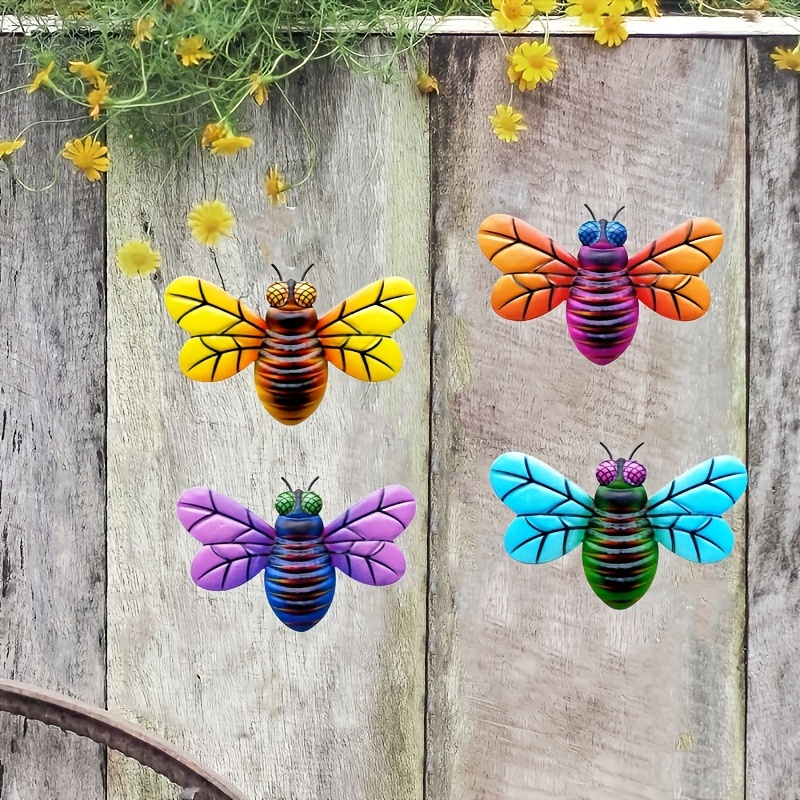 Home > 1pc/4pcs, Metal Colorful Bee Wall Decor, Bee Metal Wall Decor, Bee Metal Wall Art, Wall Decor, Metal Home Decor Wall Sculpture, Outside Decor