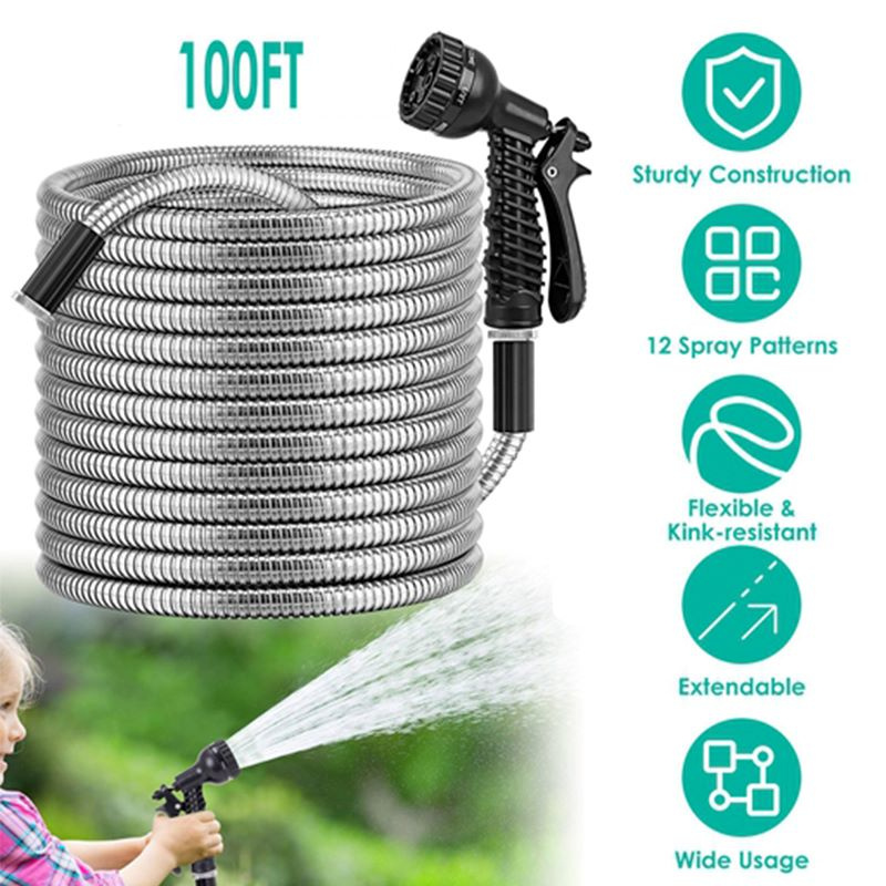 1.Made from 201 stainless steel, the garden hose is made to last, suitable for various outdoor conditions.