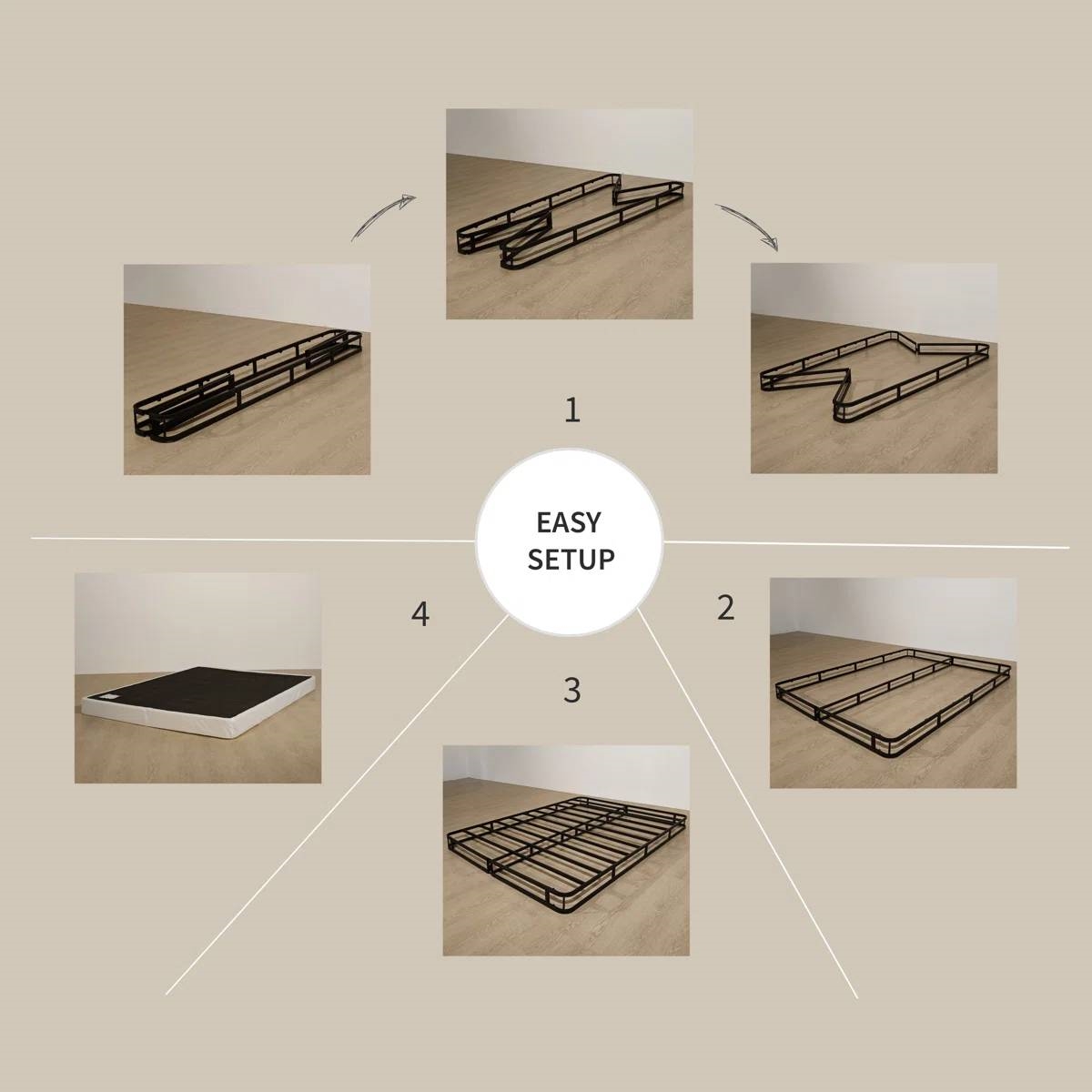 A crucial component of your bed setup, the right foundation is just as essential as your mattress. Our carefully designed Twin size 8-inch Metal Frame Box-Spring Mattress Foundation with Cover offers exceptional support under any mattress. This box spring is the perfect base for your mattress, ensuring a peaceful and comfortable slumber. It is incredibly easy to assemble, making it a convenient addition to your bedroom. Rounded corners are friendly to your beautiful beds. Foldable for quick-easy assembly and portability everywhere.