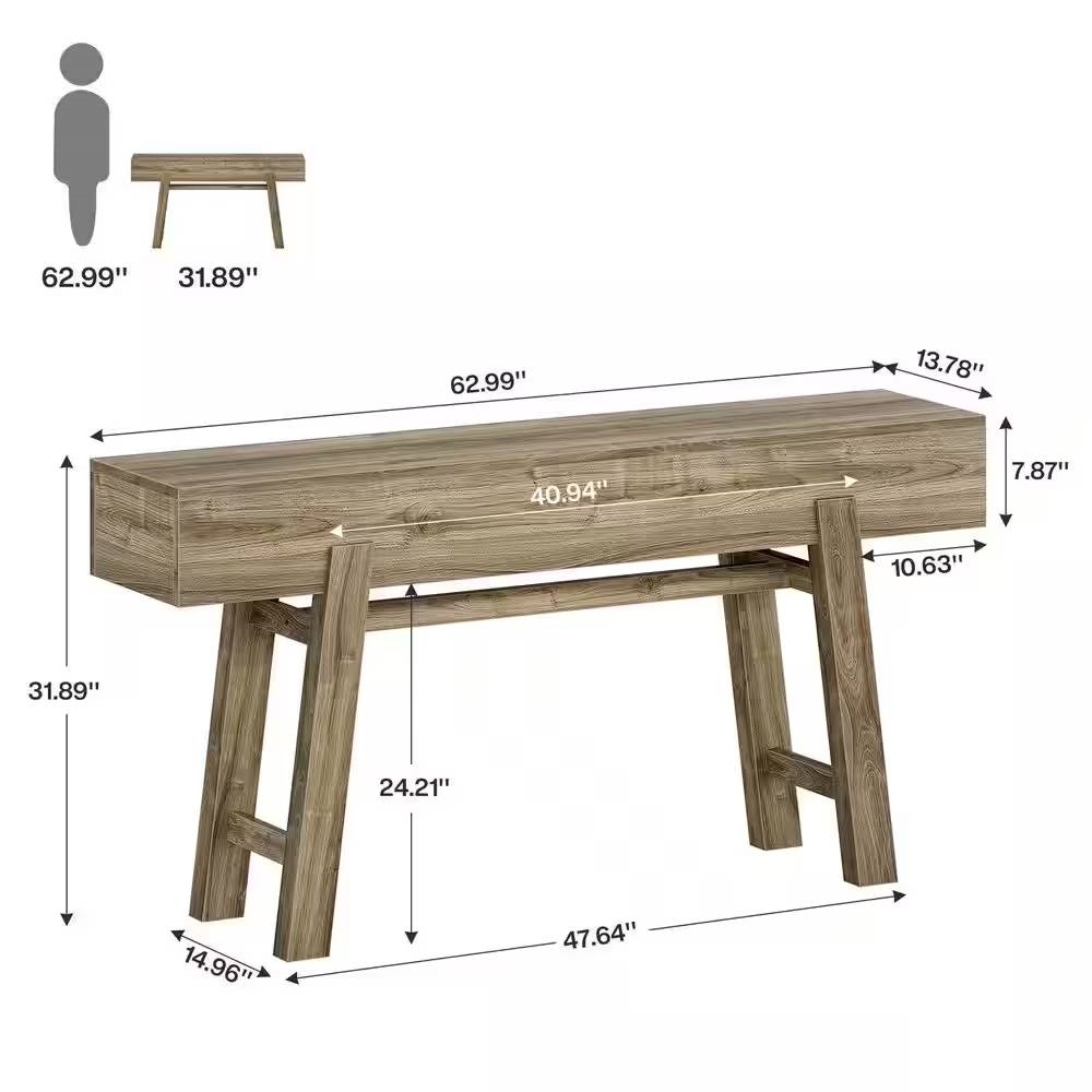 • 63-inch Modern Farmhouse Narrow Console Accent Sofa Table in Grey Wood Finish