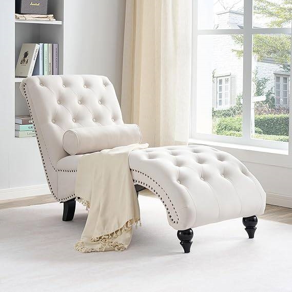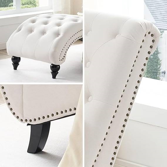This Plush Upholstered Tufted Armless Chaise Lounge Chair w/ Pillow Cream pairs seamlessly with bohemian décor, Scandinavian minimalism, or traditional interiors. Clean curved silhouette accented by polished nailhead trim creates a versatile vintage-modern aesthetic. Ergonomic S-curve aligns with natural body posture while the detachable lumbar pillow provides targeted lower back support. Ideal for pregnant women, chronic pain sufferers, or posture-conscious users. Sink into plush high-density foam wrapped in premium linen fabric, designed to retain shape after years of use. Breathable textured material resists pilling while offering cloud-like softness – perfect for curling up with a book or afternoon naps. Industrial-strength hardwood frame and reinforced legs support up to 300lbs effortlessly. Tested for wobble-free performance in high-traffic areas like sunrooms, reading nooks, or open-concept living spaces. Tool-free setup in under 15 minutes with numbered parts and visual instructions.
